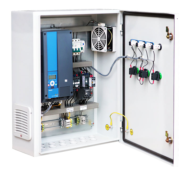 Шкафы управления насосами и водоснабжением ШУН к поставке от производителя ГК ЭнергоЗапад в диапазоне мощностей до 800 кВт и более, как на низкое напряжение: 220В, 380В, 690В, так и на высокое: 6 кВ, 10 кВ. Тип управления-регулирования: Прямой пуск/ручное/СТАРТ-СТОП, под заказ: плавный пуск, с частотником, с УПП, с ЧРП, с ПЧ. Климатическое исполнение под заказ: У1, У2, У3, УХЛ, УХЛ1, УХЛ2, УХЛ3, УХЛ4 и УХЛ5. Степени защиты шкафа - под заказ: IP00, IP21, IP31, IP44, IP54, климатический блок контейнер для крайнего севера (-60+50t). На заметку покупателю! По отдельному требованию заказчика возможно изготовление шкафов на другие значения мощности, управлением прямого пуска, напряжения сети и др.